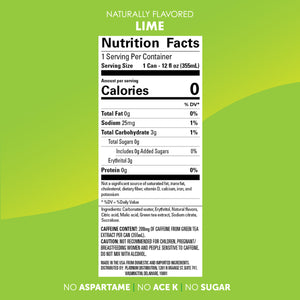 Ingredients: Carbonated water, Natural flavours, Citric acid, Malic acid, Caffeine (from green tea), Sodium citrate, Sucralose.